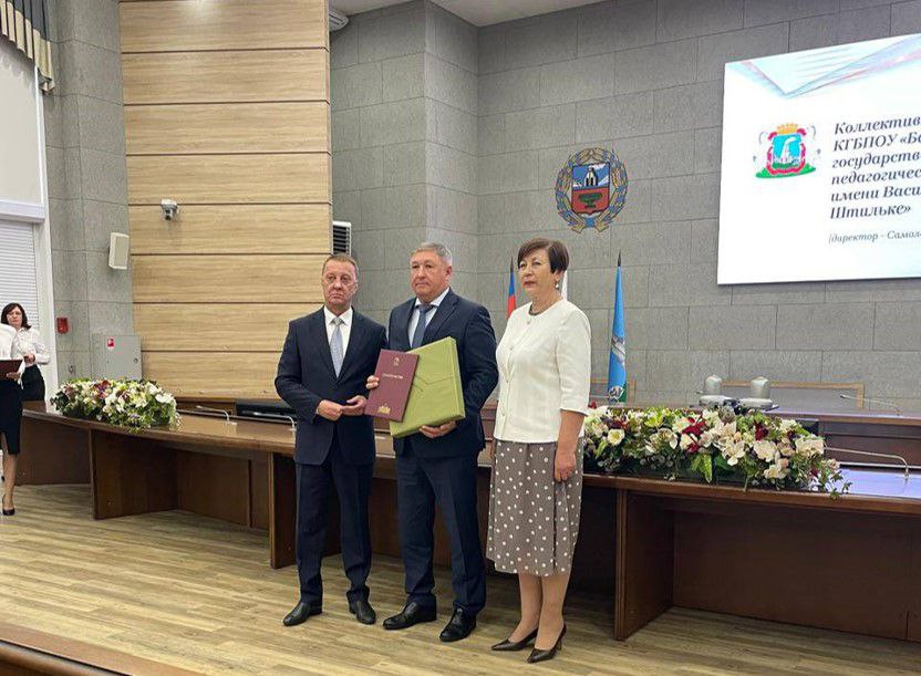 28 августа 2025 года в Администрации города Барнаула состоялась церемония открытия городской Доски Почета. Наш коллектив Барнаульского государственного педагогического колледжа имени В.К. Штильке отмечен наградой за высокие достижения в области профессионального образования и большой вклад в патриотическое воспитание молодёжи с занесением на городскую Доску Почета «Слава и гордость Барнаула».